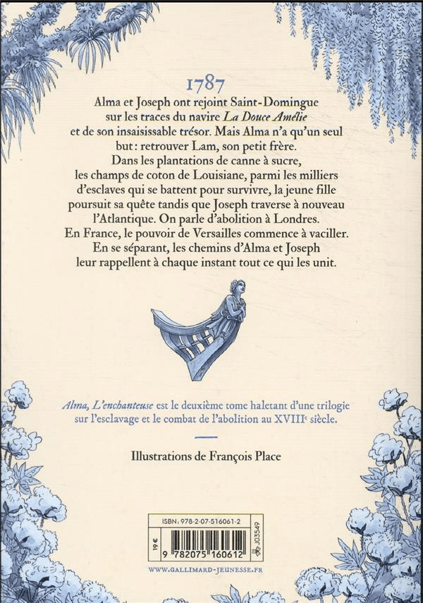 ALMA L’ENCHANTEUSE EST LE DEUXIÈME TOME D’UNE TRILOGIE SUR L’ESCLAVAGE ET LE COMBAT DE L’ABOLITION AU XVIIIe SIÈCLE.