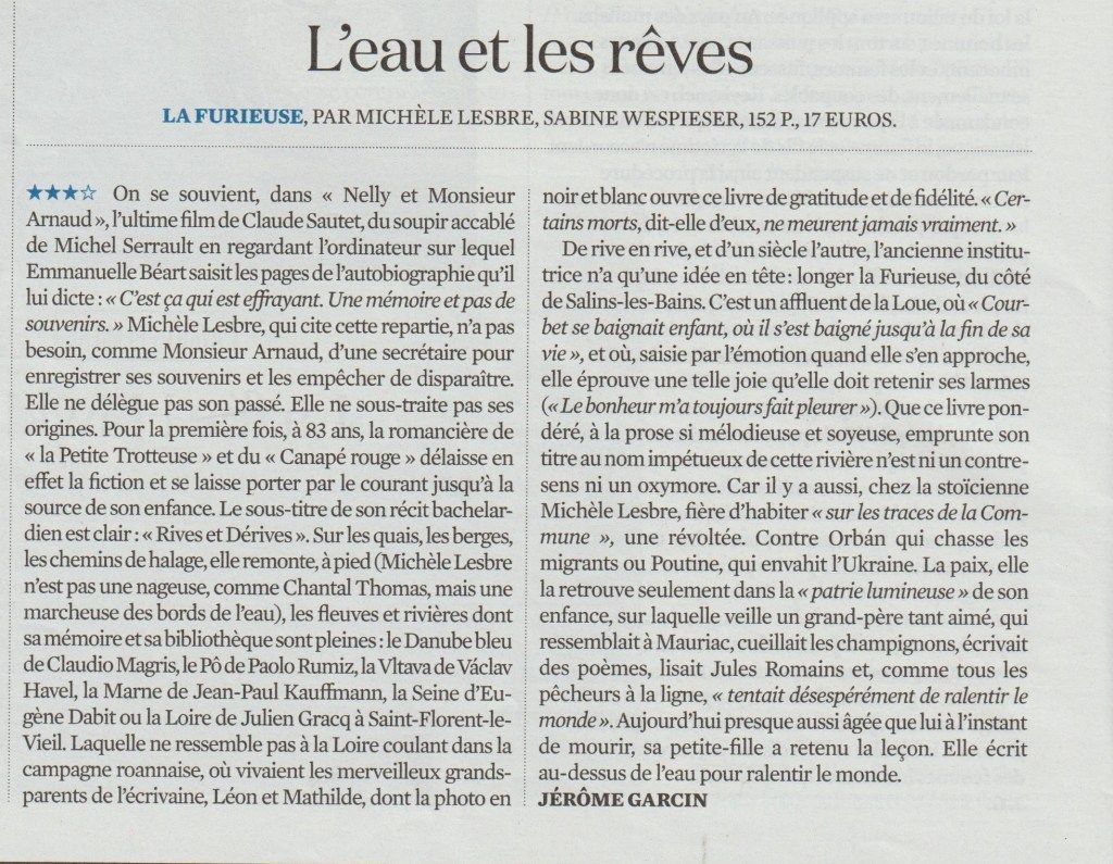 UN BEL ARTICLE signé Jérôme GARCIN, paru dans l’OBS du 02/03/23. Jérôme Garcin, journaliste, critique littéraire et animateur du Masque et la Plume sur France Inter.