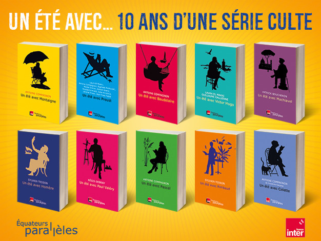 1) Un été avec Montaigne par Antoine Compagnon. 2) Un été avec Proust (collectif) par Laura El Makki/Antoine Compagnon 3) Un été avec Baudelaire par Antoine Compagnon. 4) Un été avec Victor Hugo par Guillaume Galienne/Laura El Makki 5) Un été avec Machiavel par Patrick Boucheron- 6) Un été avec Homère par Sylvain Tesson. 7) Un été avec Paul Valéry par Régis Debray … 8) Un été avec Pascal par Antoine Compagnon – 9) Un été avec Rimbaud par Sylvain Tesson. …- 10) Un été avec Colette par Antoine Compagnon. 11) Un été avec Jankélévitch par Cynthia Fleury