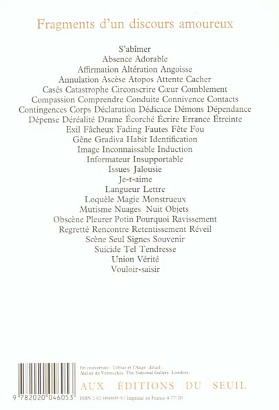 Découvrir le livre : https://www.librairiedoucet.fr/livre/9782020046053-fragments-d-un-discours-amoureux-roland-barthes/