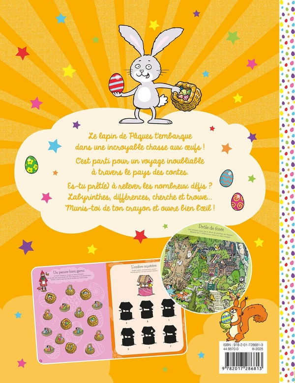 Un cahier de 64 pages avec des jeux et activités variés sur le thème de Pâques et du printemps : labyrinthes, différences, suites logiques, mots mêlés, ombres, paires… Sans oublier des jeux de cherche et trouve.