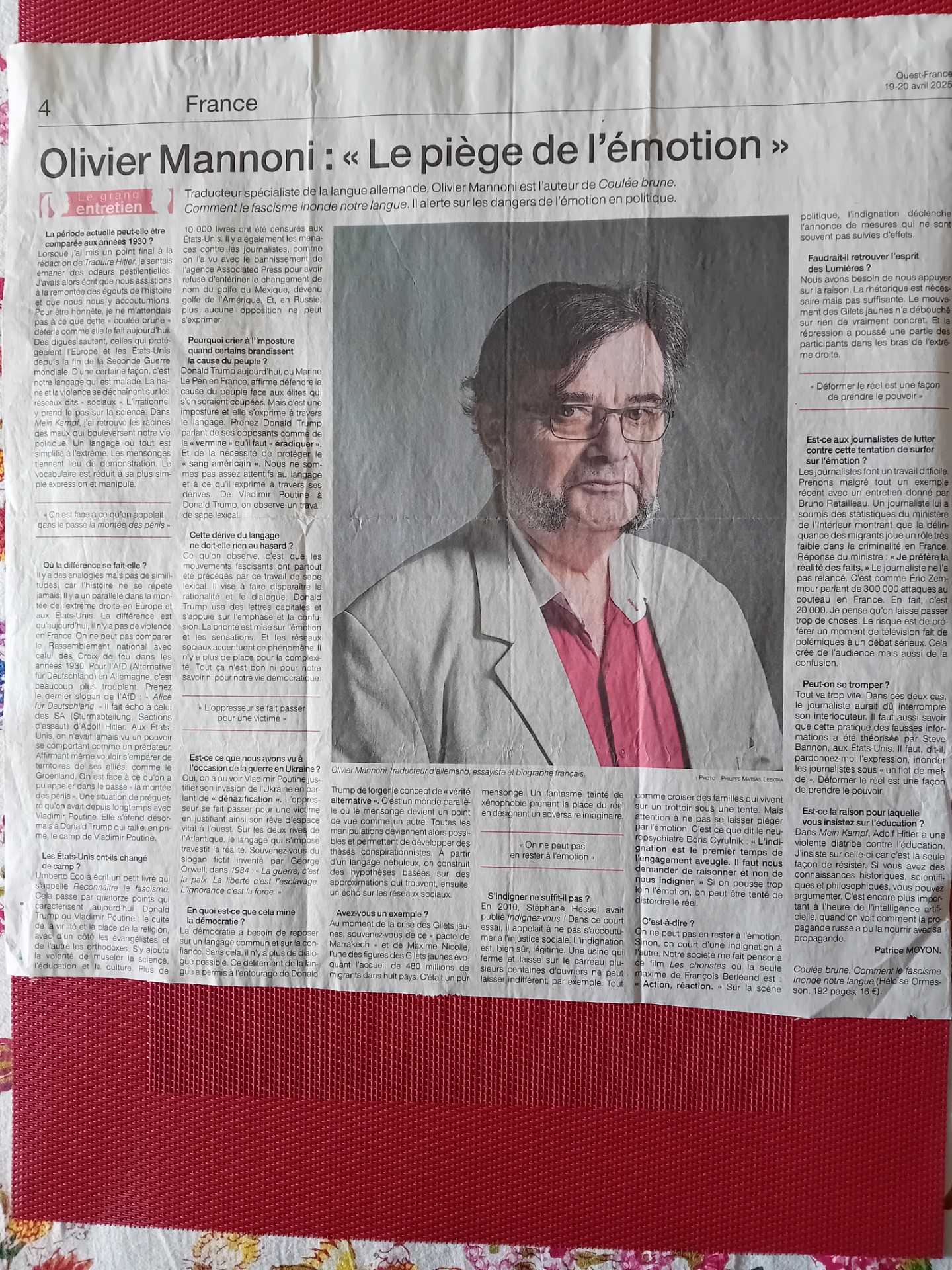 Lire le grand entretien (Ouest-France du 19/20 avril 2025) en partie, en cliquant ici !
